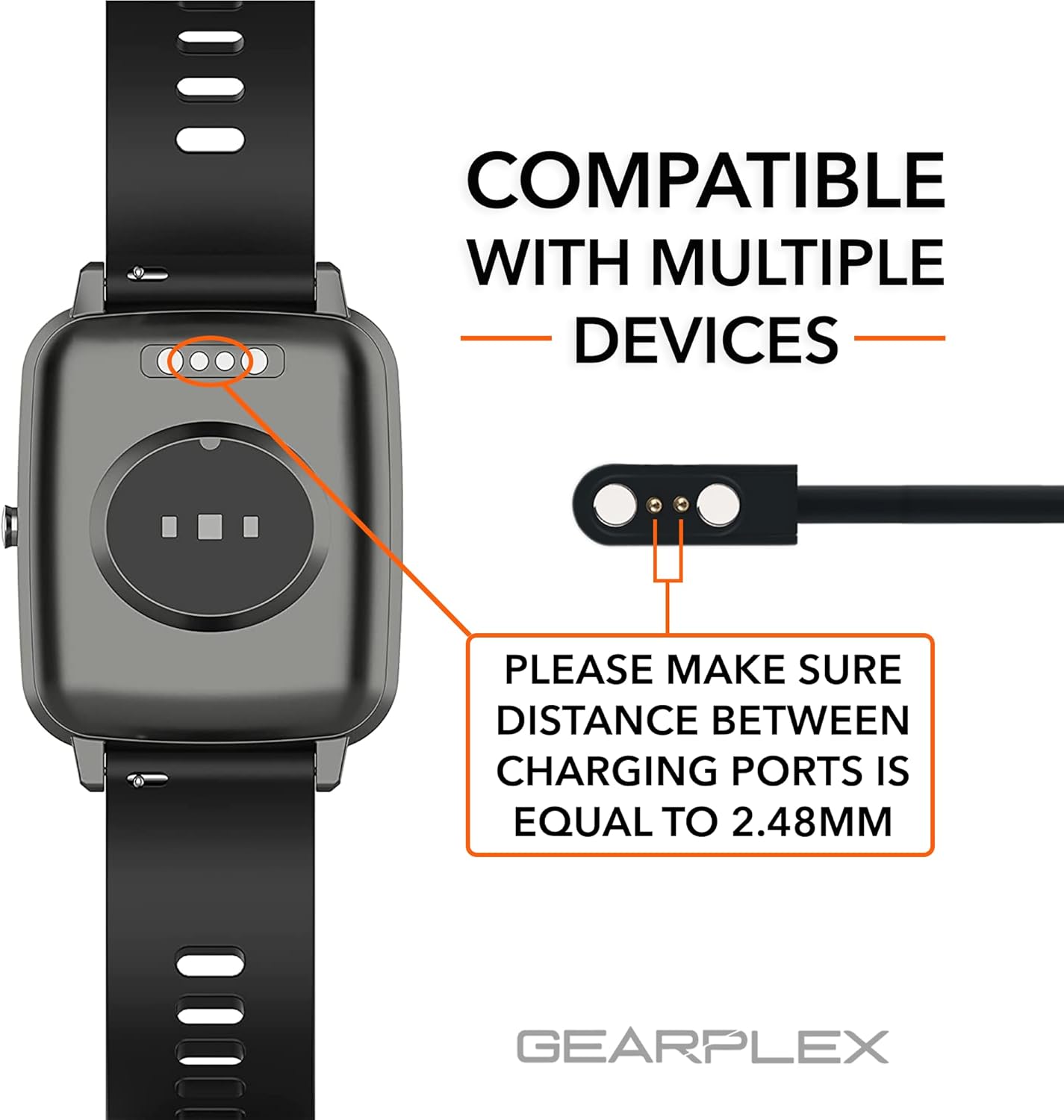 Package Includes: 2 x brand new black charging cable (size- 2.48 mm) for smart watches. (Note: the watch is not included).