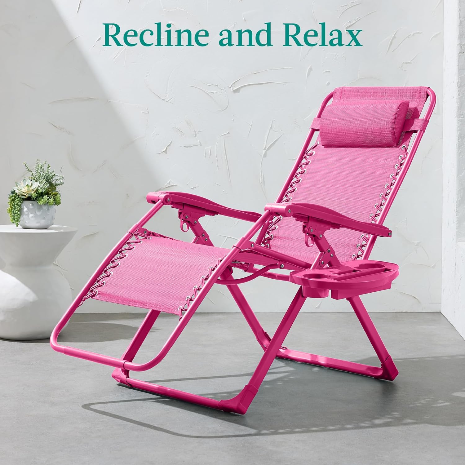 Best Choice Products Adjustable Zero Gravity Chair, Monochromatic Color Folding Patio Recliner w/Side Tray, Headrest – Hot Pink