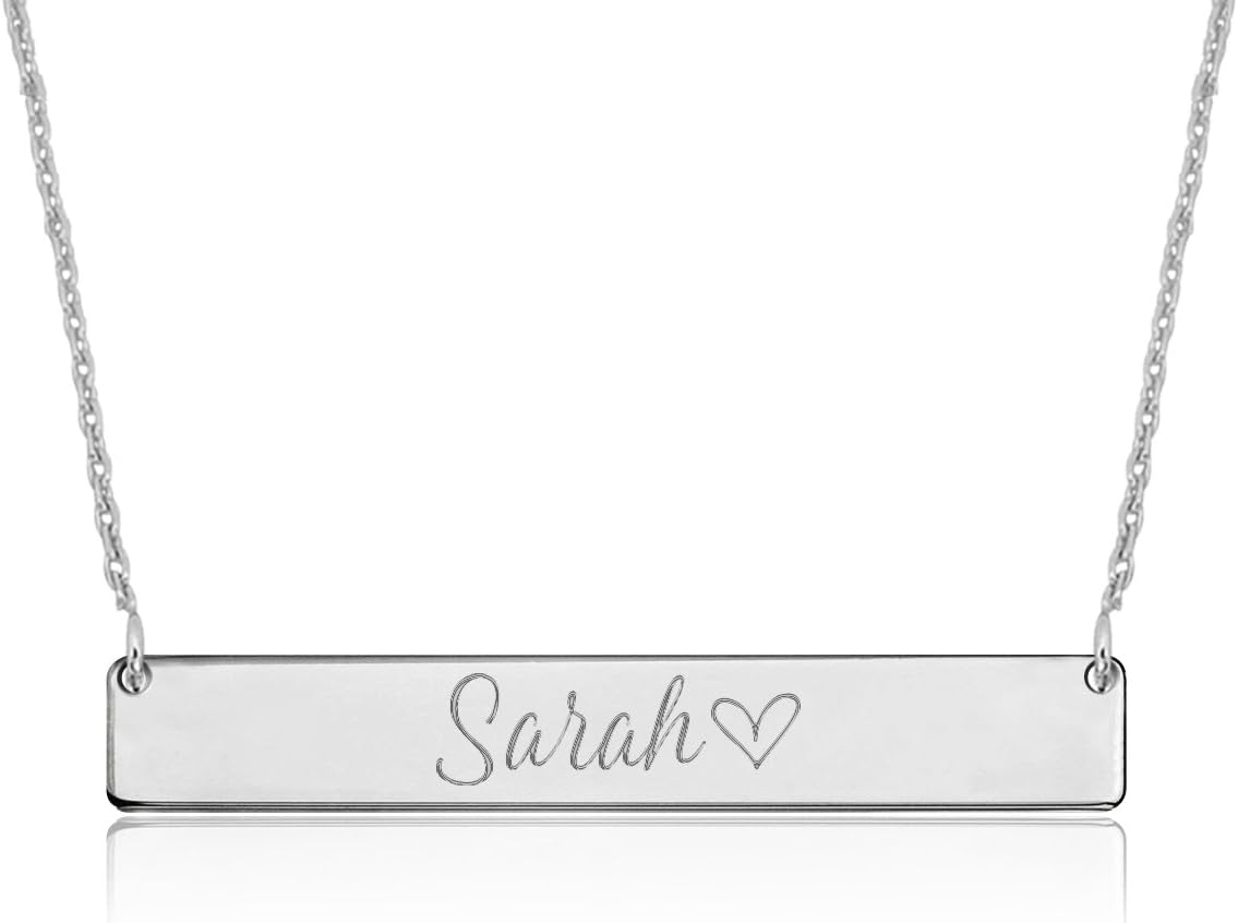 Custom Name Bar Necklace Sterling Silver – Personalised Nameplate Necklace with Any Name
