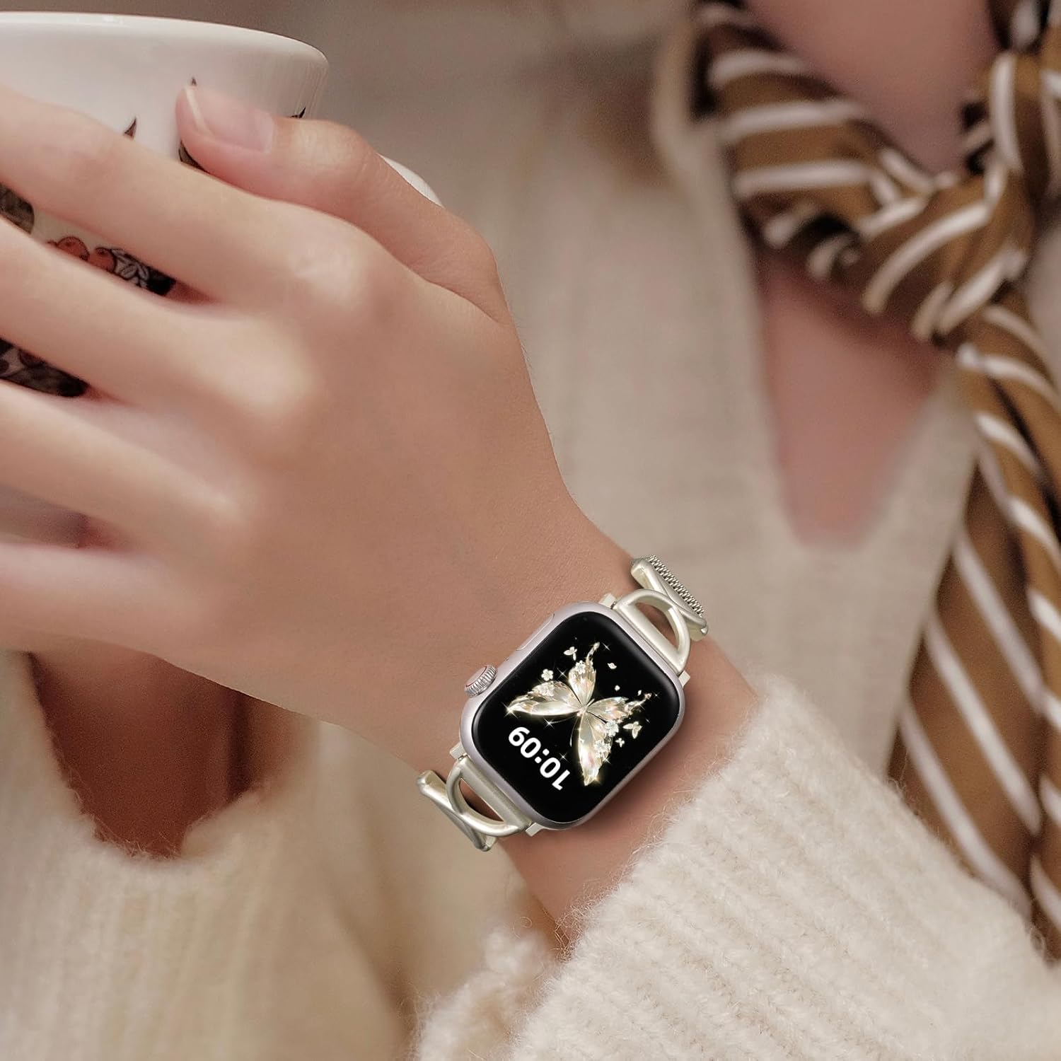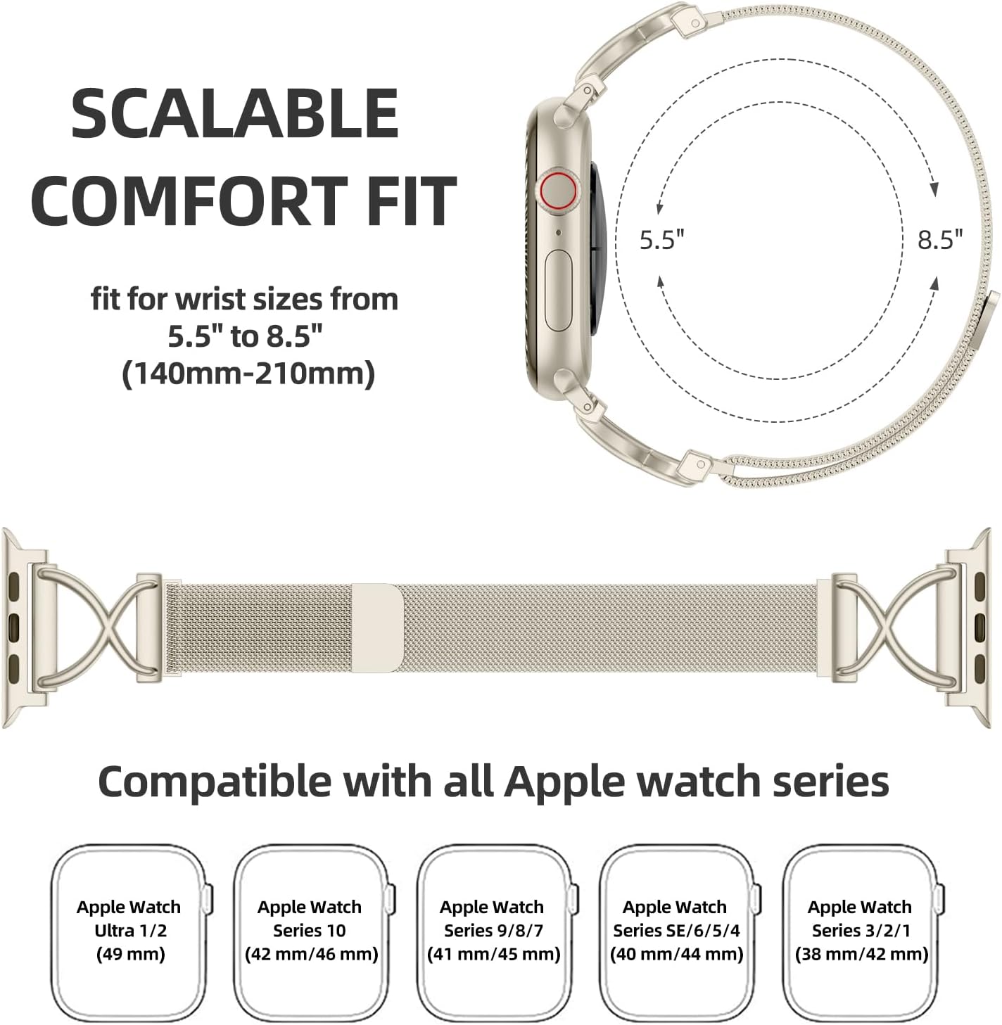 Dirrelo Metal Slim Band Compatible for Apple Watch Bands for Women 40mm 41mm 38mm 44mm 45mm 42mm 49mm 46mm, Mesh Stainless Steel Magnetic Clasp Strap for iWatch Series 10/9/8/7/6/5/4/3/2/1/SE Ultra