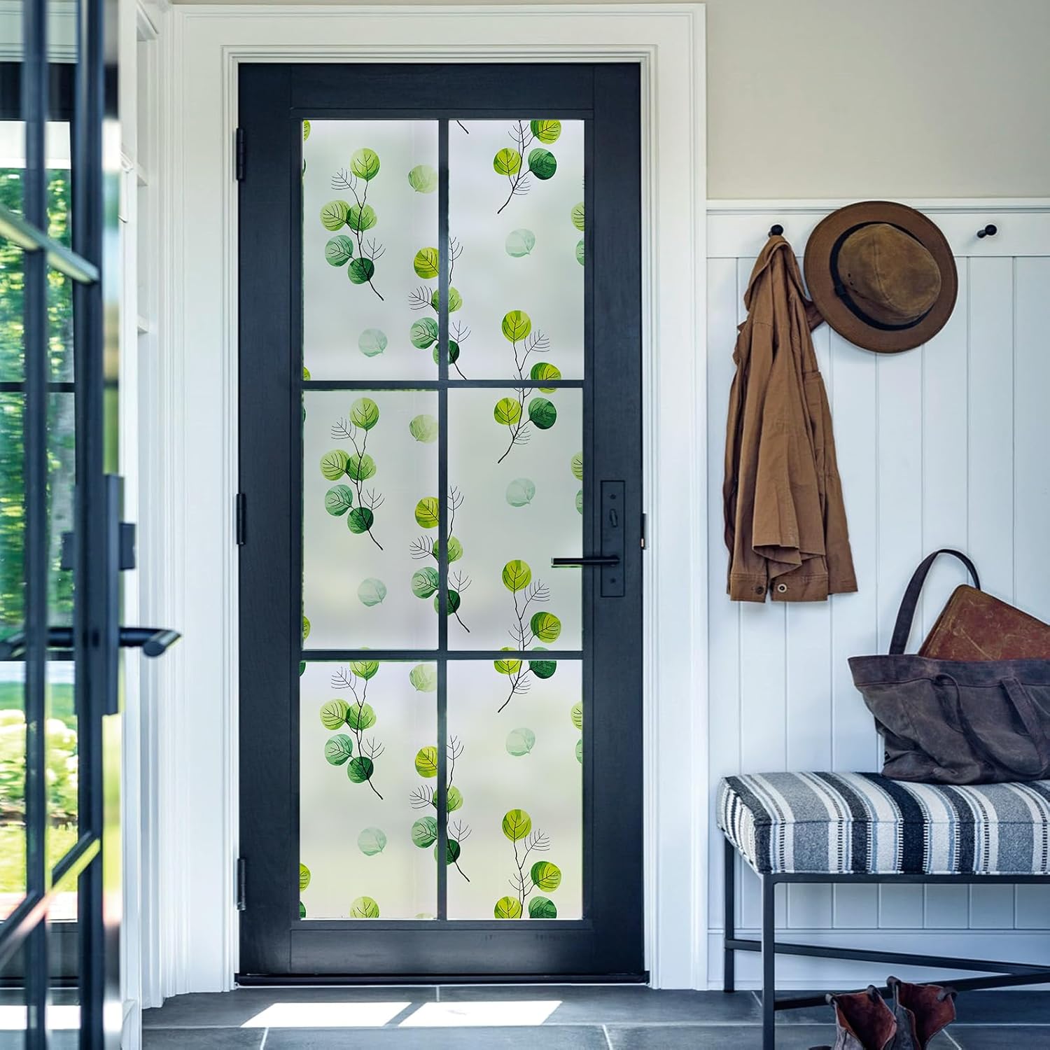 DKTIE Eucalyptus Leaves Stained Glass Window Film with Installation Tools, INS Style Window Privacy Film Decorative, Nordic Style for Home Decor (S541, 17.7″ x 118.1″)