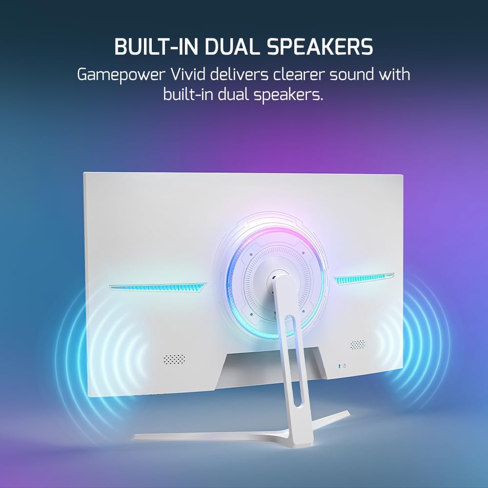 GAMEPOWER F20 27 Inch Curved White Gaming Monitor, 120Hz 1080p Display, 1ms Response Time, AMD FreeSync, HDR Support, 125% sRGB, RGB Backlight, Dual Speakers, Zero Frame Design, HDMI and VGA Inputs