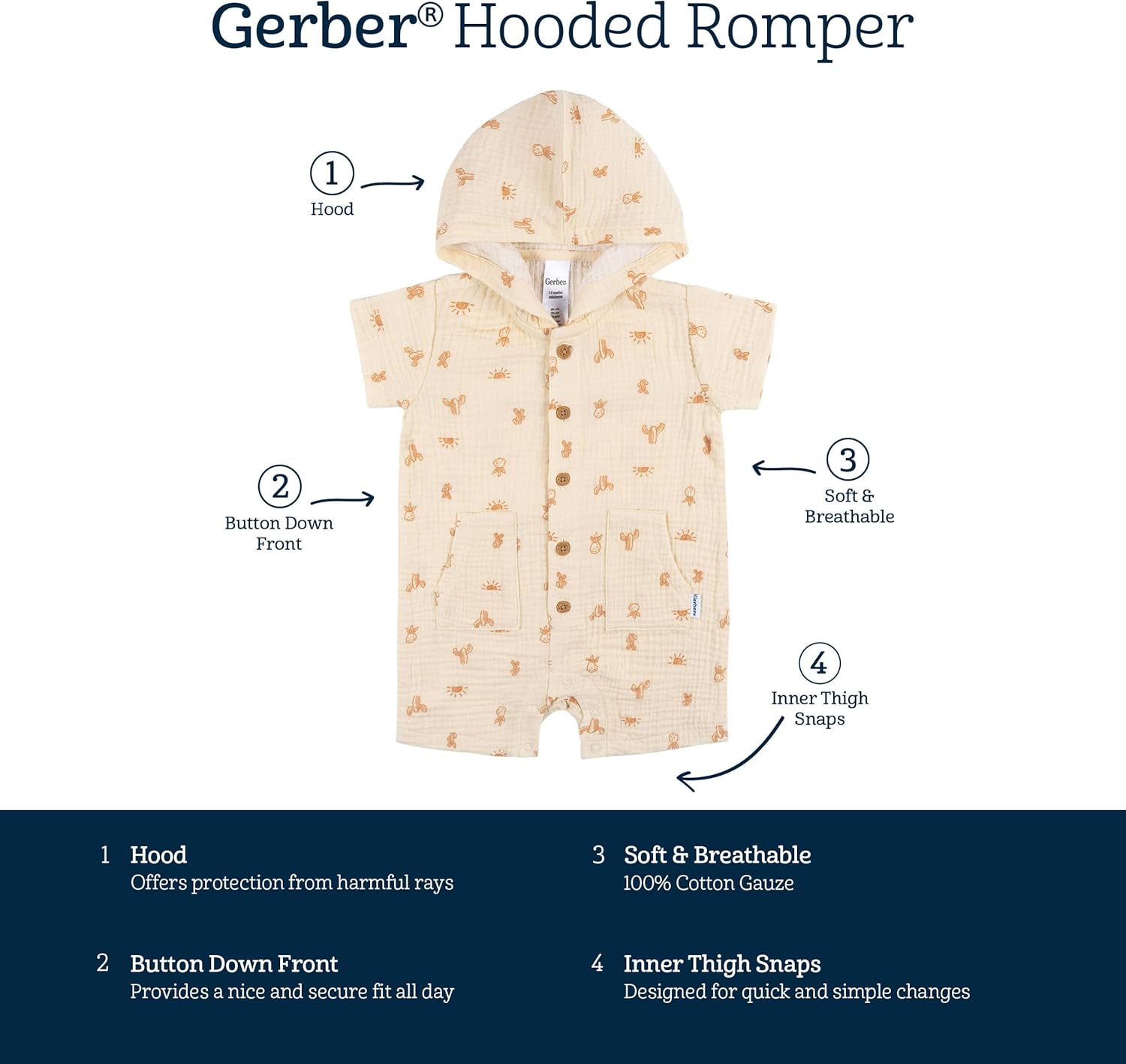 Whether you’re taking a family trip to the park, enjoying a day trip, or simply playing in the backyard, our baby boy romper is the ideal choice for any warm-weather occasion. Made from a lightweight, breathable 100% cotton gauze, this baby boy romper keeps your little one cool and happy even in warm weather. Convenient leg snaps make dressing and diaper changes easy, while the button-down front enables a secure fit. And to protect your little one from harmful rays, an integrated hood provides gentle protection. Simple machine cleaning makes it easy to keep this baby boy romper ready to wear all season long! Easy-to-change features, safety features, and super soft fabrics, we offer baby girl clothes and baby boy clothes that are sure to fit any family’s needs. If you’re looking for baby sleepwear, we offer a wide range of baby pajamas, baby PJs, baby footies, baby sleepers, and baby fleece pajamas. We also offer baby socks and baby shoes. Our baby girl shoes are sure to add a special flair to her favorite baby outfits. We also offer many baby accessories that your little one will need, such baby sun hat, baby caps, baby hats, baby mittens, no scratch mittens, baby headbands, and baby girl headbands. Our baby bodysuits or baby Onesies® Brand bodysuits make excellent baby shower gifts, but we also offer baby gift sets. If you like to dress your baby with separates, be sure to check out our baby pants, baby shorts, baby shirts, baby tops, and baby bottoms. Our baby swimwear and baby swimsuits are a big hit too! If it’s bedding you’re looking for, we have crib sheets, changing pad, crib mobile, baby toys, baby blankets, baby gifts, swaddle blanket, and mattress protector. Our baby clothing sizing ranges from baby girl clothes preemie, baby boy clothes preemie, baby girl clothes newborn, baby boy clothes newborn, baby girl clothes 0-3 months, baby boy clothes 0-3 months, baby girl clothes 3-6 months, baby boy clothes 3-6 months, baby girl clothes 6-9 months, baby boy clothes 6-9 months, baby girl clothes 12 months, baby boy clothes 12 months, baby girl clothes 18 months, baby boy clothes 18 months, baby girl clothes 24 months, baby boy clothes 24 months, toddler girl clothes 2T, toddler boy clothes 2T, toddler girl clothes 3T, toddler boy clothes 3T, toddler girl clothes 4T, toddler boy clothes 4T, toddler girl clothes 5T, toddler boy clothes 5T. We have all your baby stuff covered, whether it’s baby boy stuff or baby girl stuff!