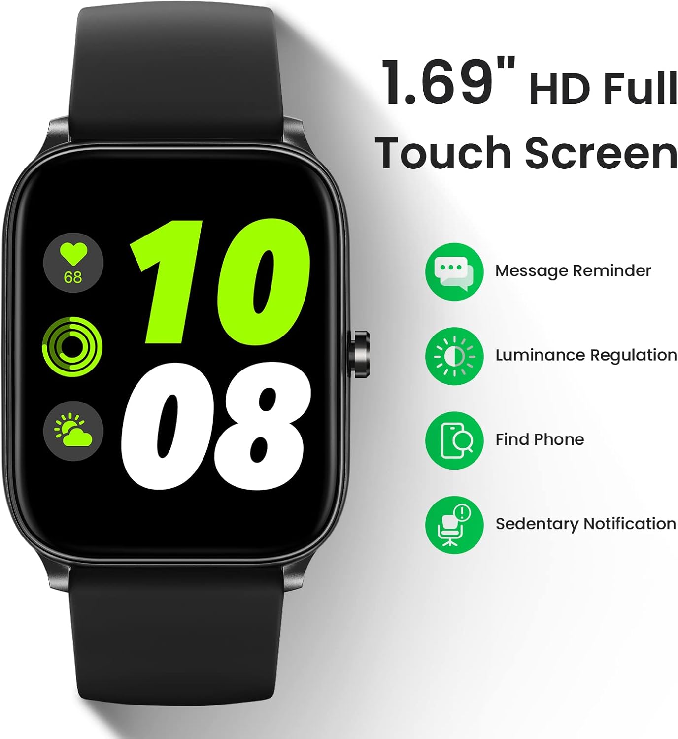 HAYLOU Smart Watch for Android iOS Phones, 1.69″ Touch Screen Smart Watches for Men Women with 12 Sport Modes, Fitness Tracker with Heart Rate Blood Oxygen Sleep Monitor IP68 Waterproof Fitness Watch