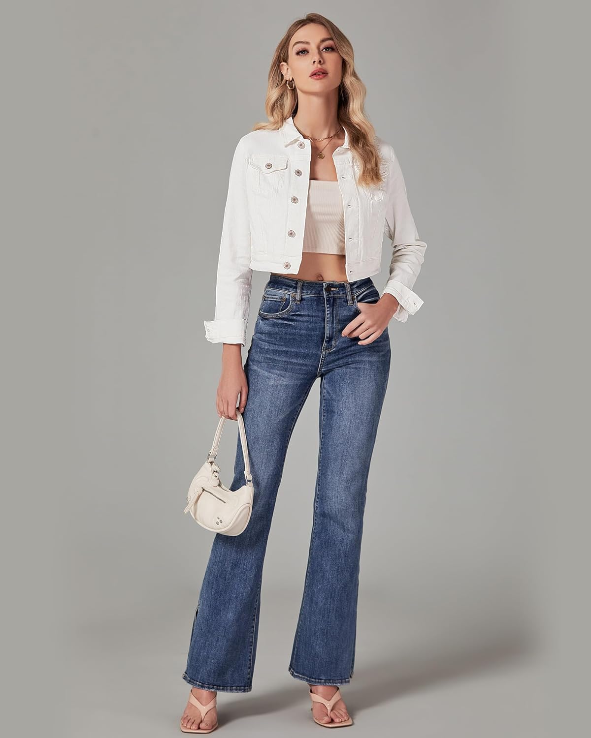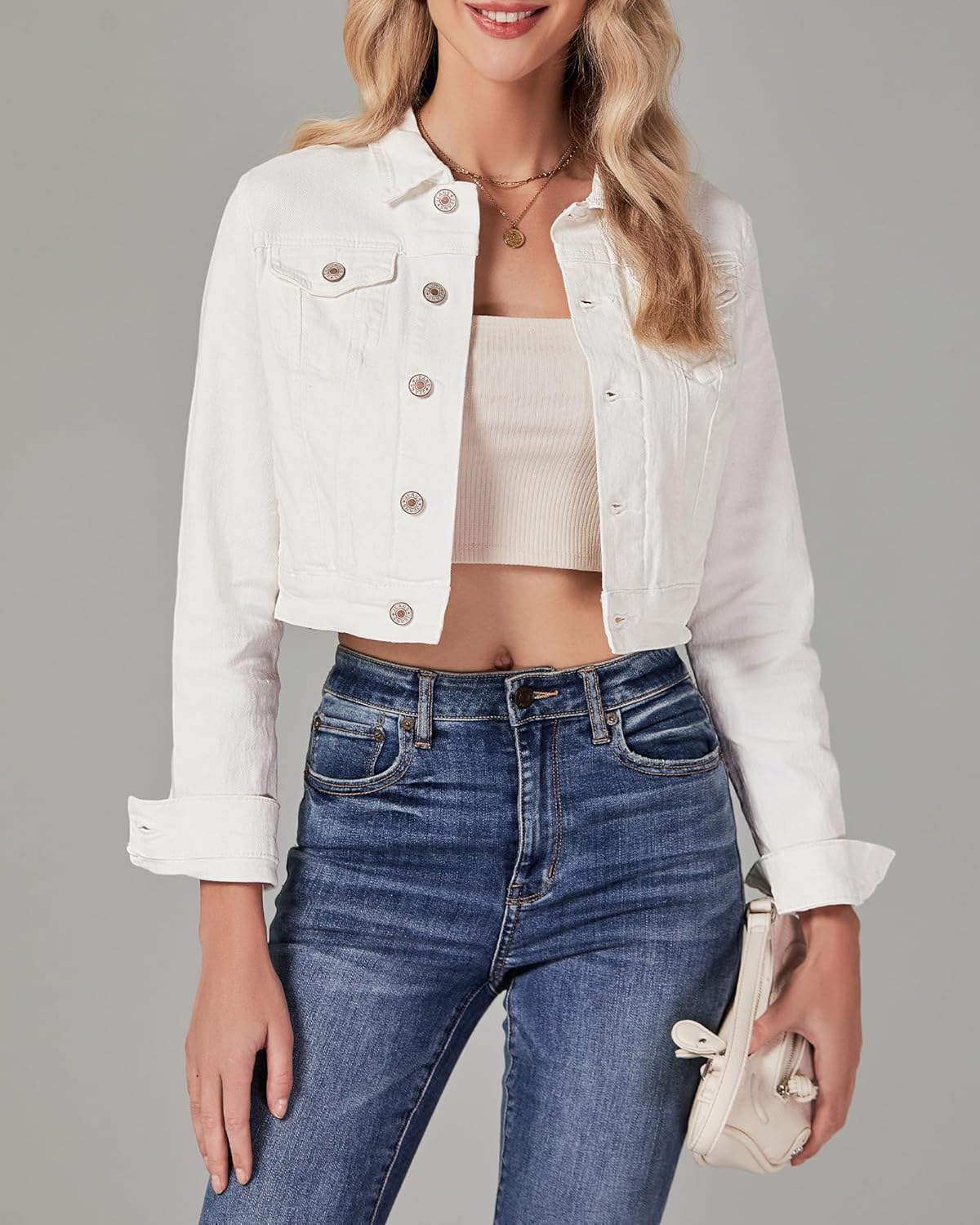 luvamia 2025 Cropped Jean Jackets for Women Fashion Short Denim Shacket Jacket Lightweight Fitted Stretchy with Pockets