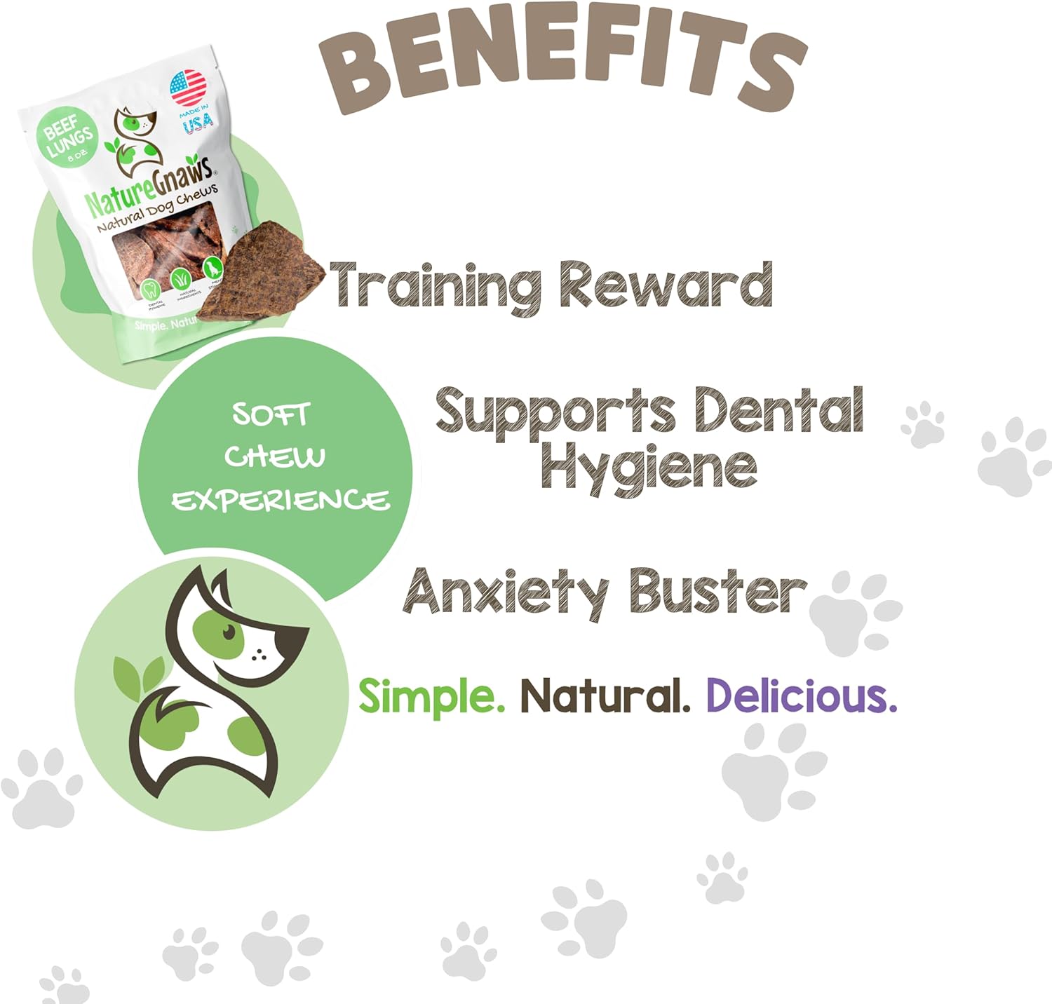 NATURAL DENTAL CHEWS – Soft and savory, the natural act of chewing our Beef Lung Chews helps reduce plaque and tartar for cleaner teeth and fresher breath. Promoting overall good dental hygiene, these natural chews for dogs will keep your pet busy and satisfied.