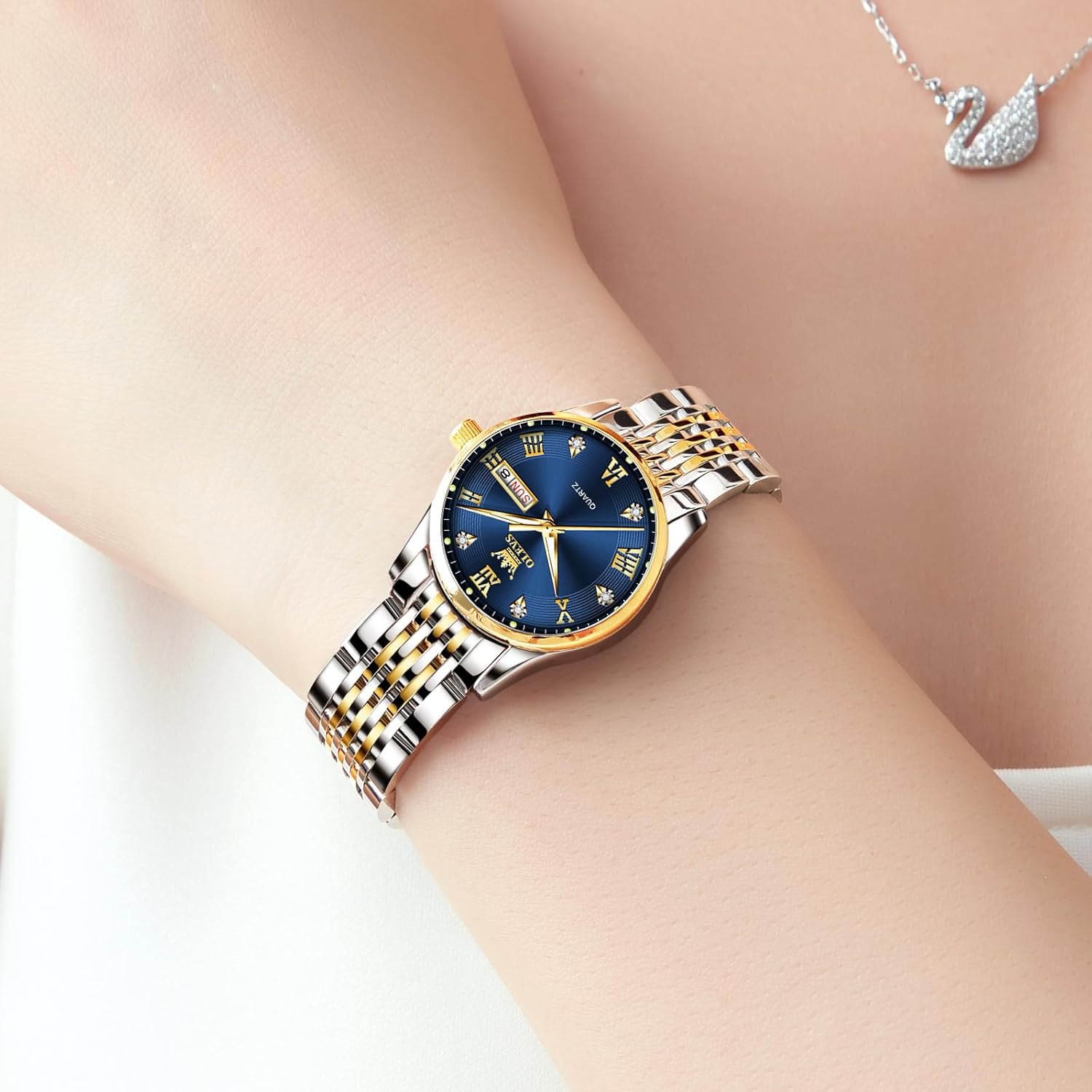 OLEVS Diamond Blue Two Tone Watches for Women