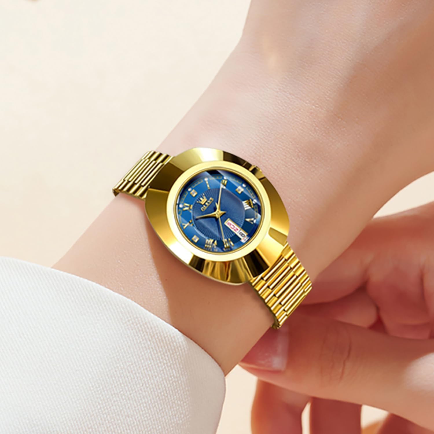 OLEVS Womens Watches Gold Diamond Tungsten Steel Luxury Dress Classic Ladies Calendar Week Wrist Watches for Women