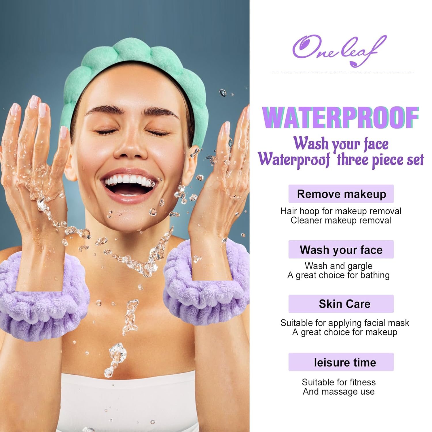 【SPA HEADBAND MATERIAL】Oneleaf Spa headband for women the sponge lining used and the terry cloth covering the surface , these skincare headbands have a strong absorbency and can be used when you are washing your face, skincare or makeup.And can soak up moisture as you wash your face or apply your skincare creams and serums.