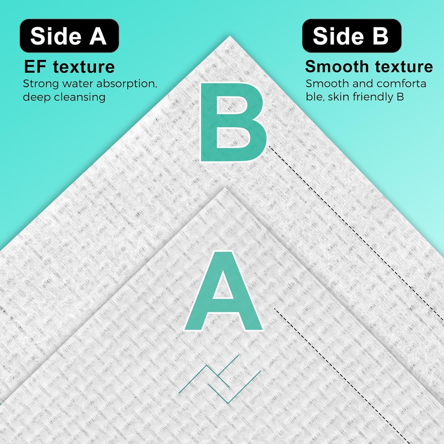 EXTRA THICK & SOFT FACE TOWELS: The face towelettes disposable are 10″ x 12″, 50% thicker than other facial towels.Our face towels are double-sided, with a smooth surface on one side for gentle skin cleansing and a grid-textured surface on the other side for deep cleansing, effectively removing surface stains and allowing the skin to breathe freely.