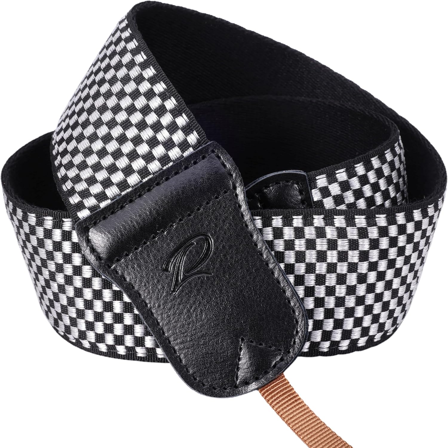 Padwa Lifestyle Black and White Fine Plaid Camera Strap – 2″ Wide Cowhide Head Cotton Strap,Vintage Check Weave Neck Shoulder & Crossbody Camera Straps for Photographers Gift and All DSLR Cameras