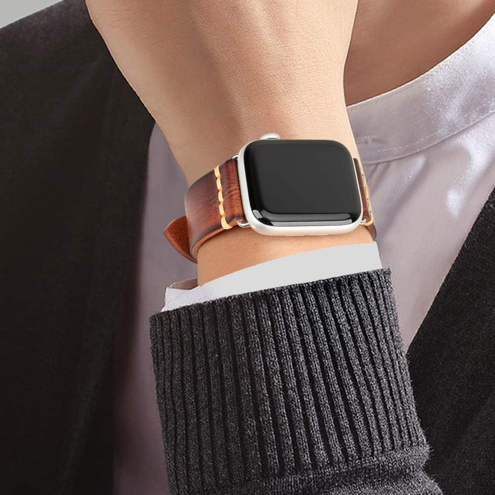REZERO Smartwatch Bands Compatible with Apple Watch, Vegetable Tanned Leather Watch Straps, Watch Bands Replacement for iWatch Series 10/9/8/SE, 38/40/41/42/44/45/46/49mm for Men, Women