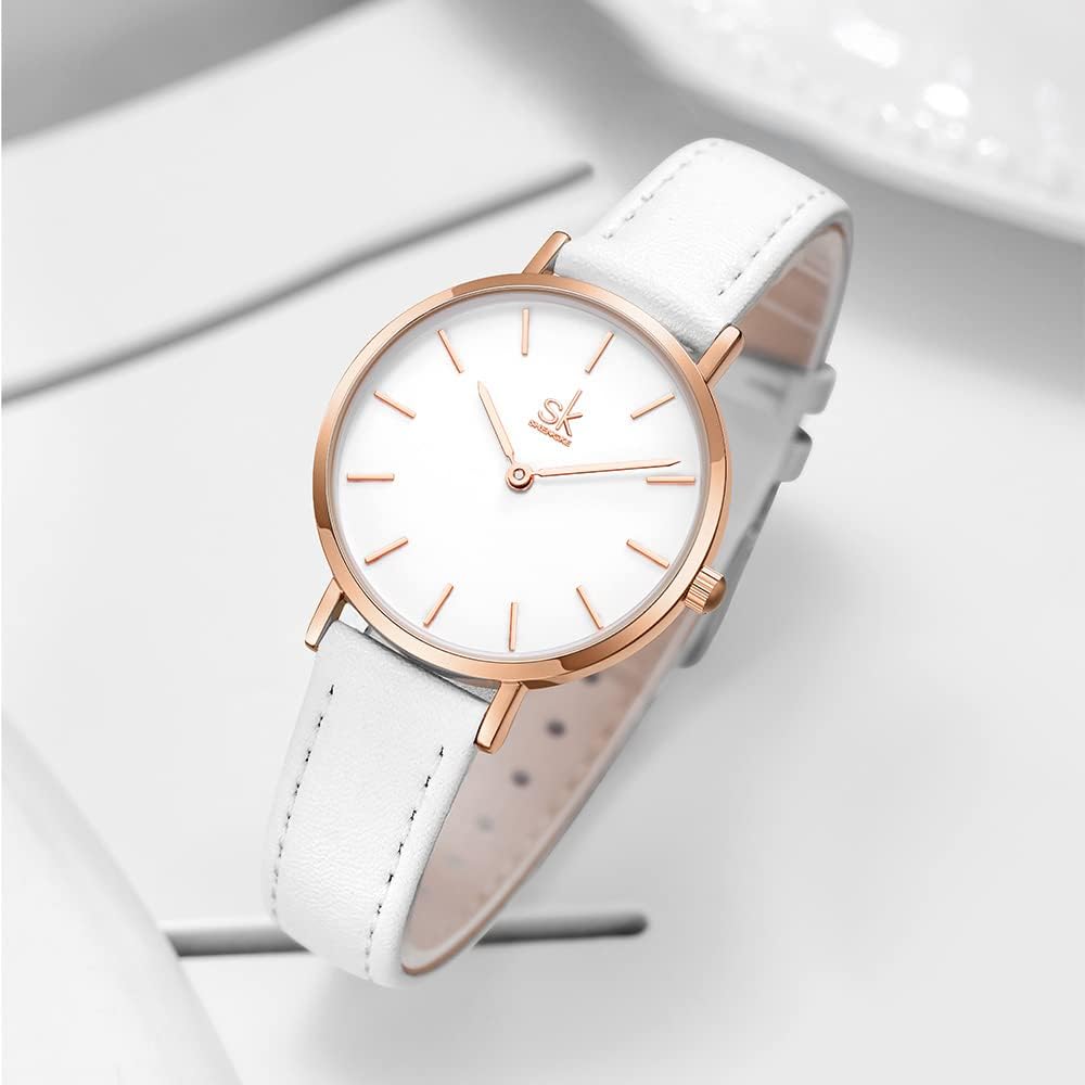 SK Ultra Thin Minialist Women Watches Simple Two Hands Ladies Dress Watch Leather Strap