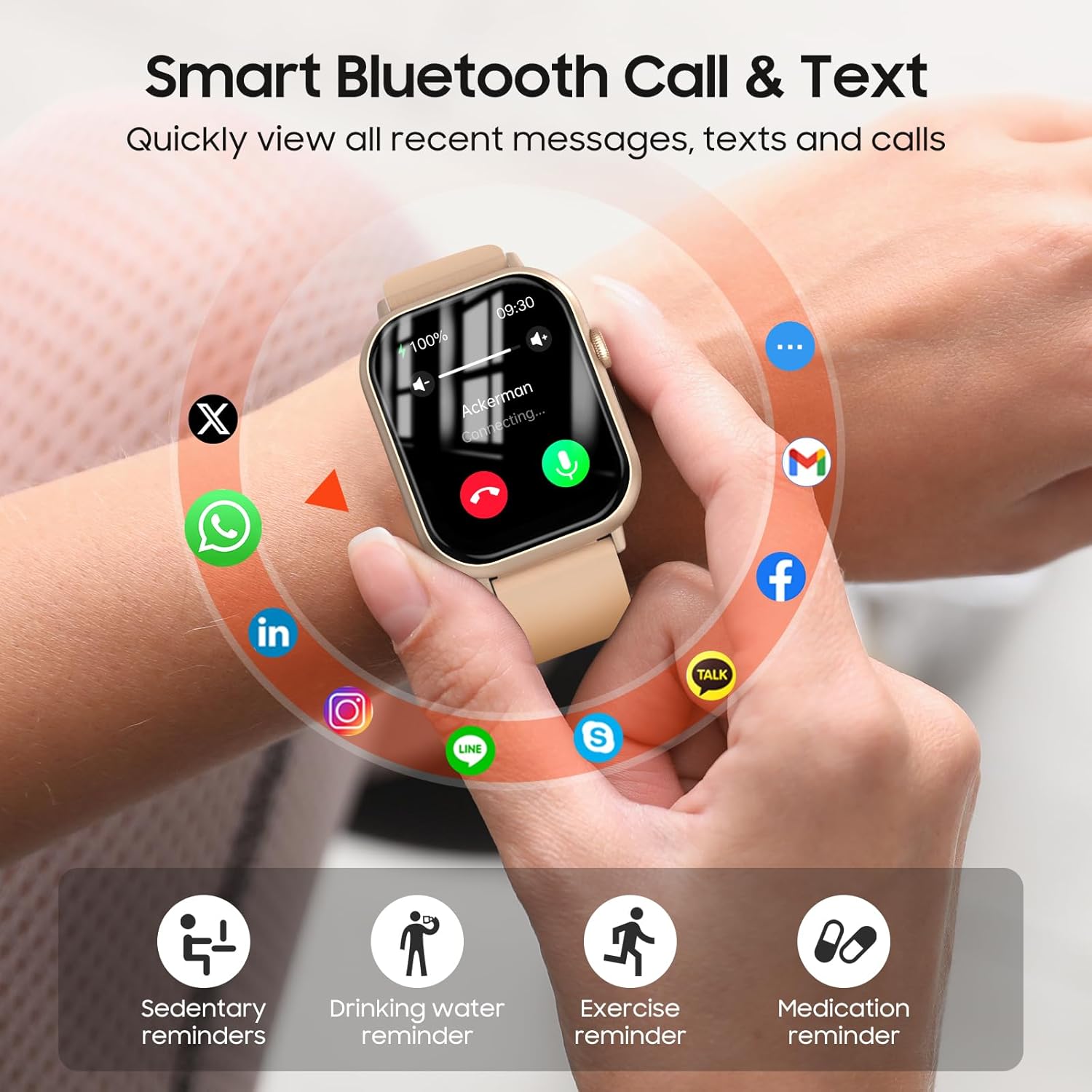 Bluetooth Call & Message Alert: Mens smart watch have a built-in high quality microphone and speaker, you can make/answer/reject calls, synchronize contacts and save call logs, womens smart watches can also receive message notifications (Facebook, WhatsApp, Instagram, X etc) for you, if you need more apps message notifications, please add them manually on the app. If you need more app messages, please add the app manually on the app. (you cannot send text)