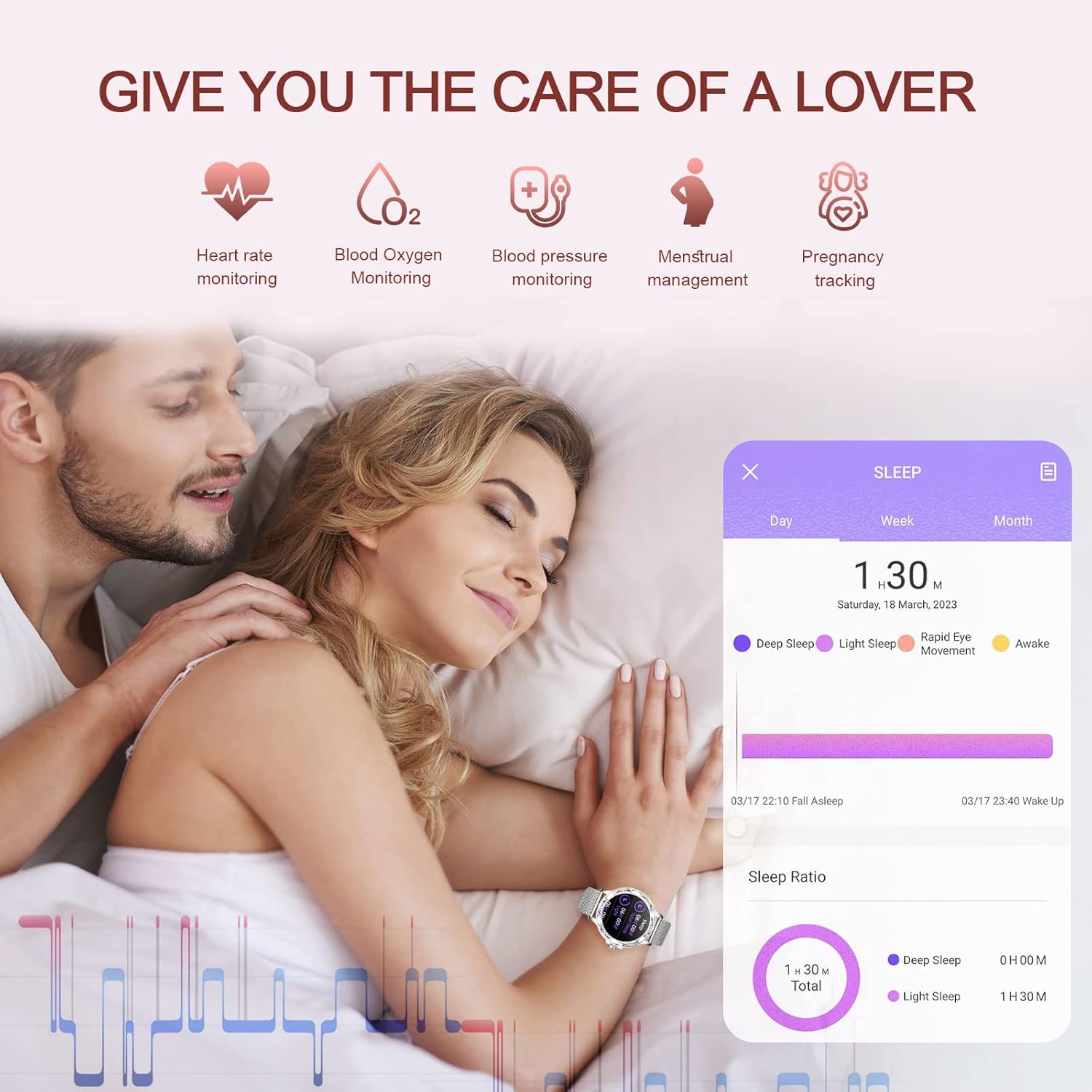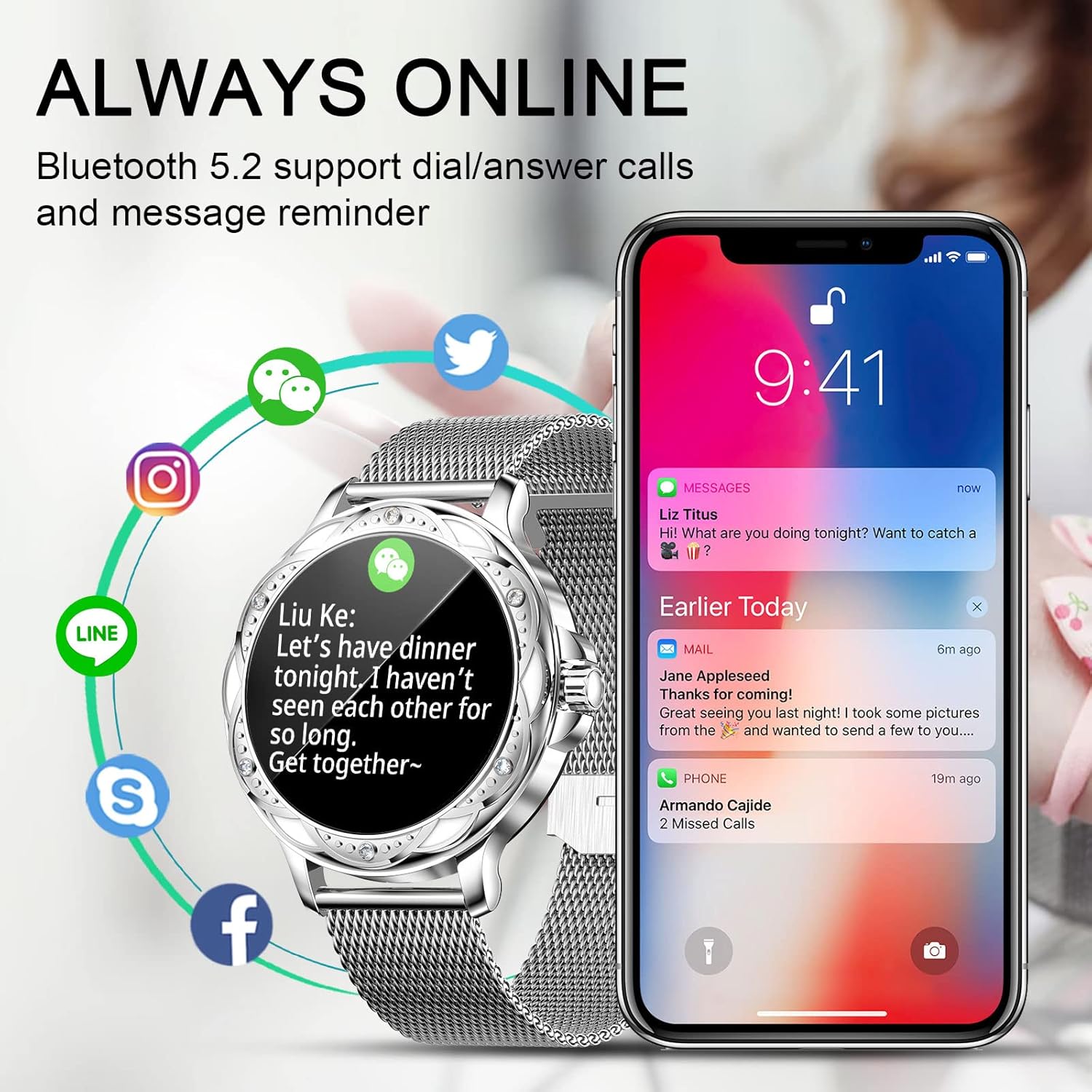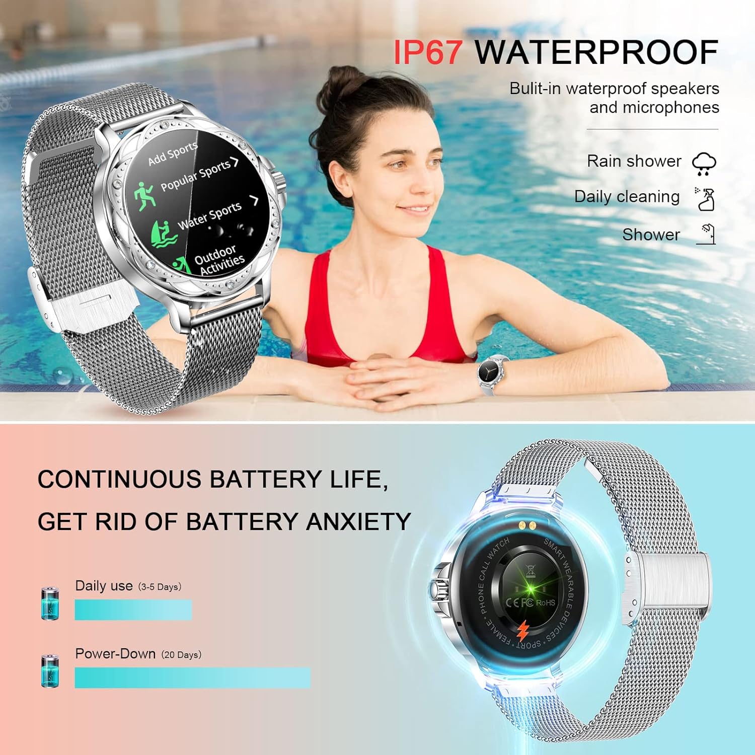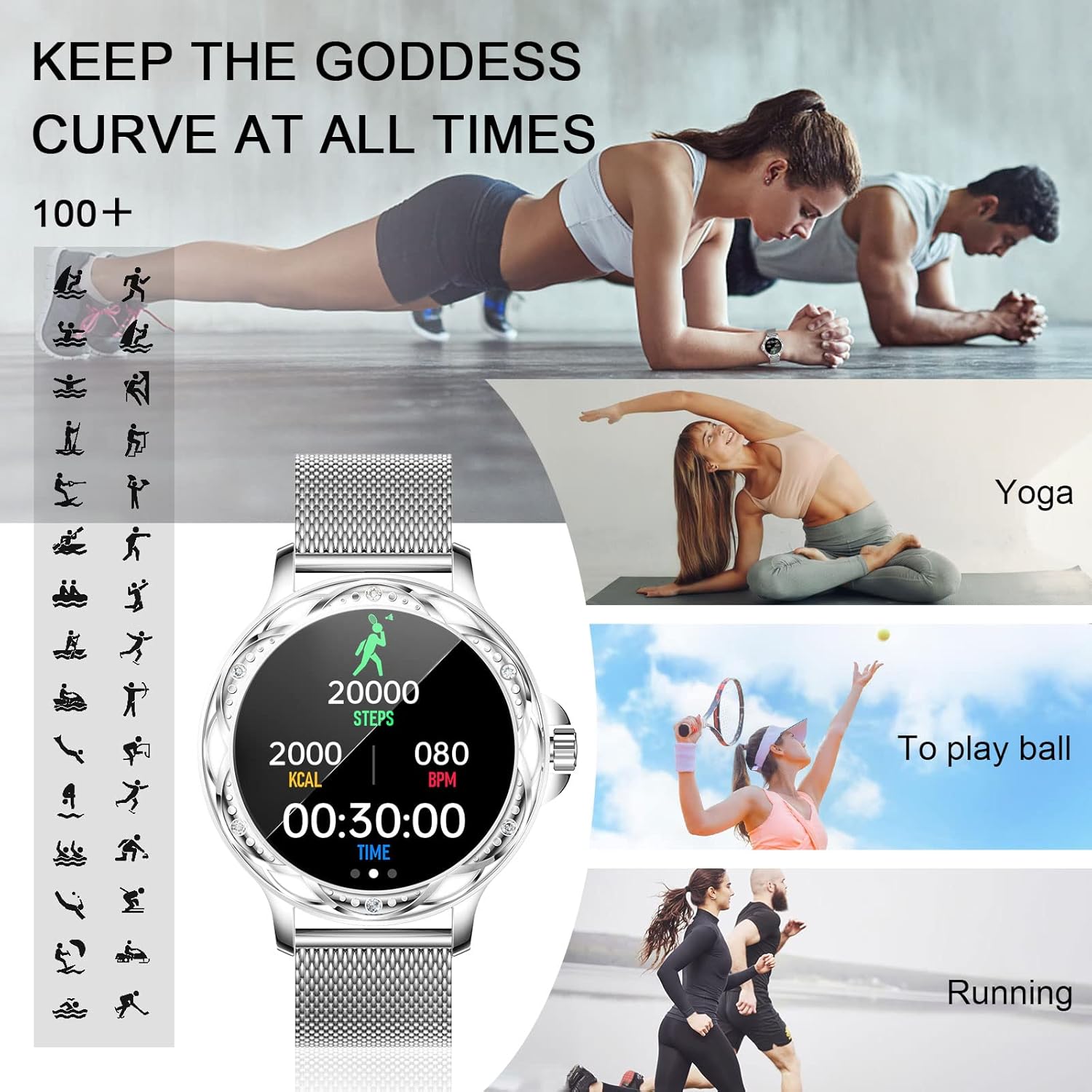 Your watch, your style: shell patterned steel bezel, jeweled textured crown, designer dedication for the goddess. Elegant and beautiful, but sturdy and scratch-resistant. Smartwatch includes a variety of dials for you to choose, choose your own style. Deeply optimized battery management system, up to 5-7 days of long-lasting battery life, so you can get rid of power anxiety and be energetic.